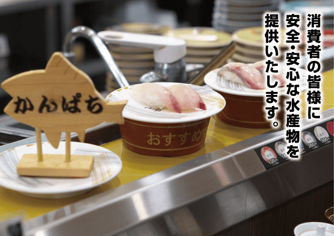 世界的に水産資源の需要が高まっている現在、これに伴い魚類養殖が注目されています。当社は種苗生産会社と提携して優秀な稚魚の提供から、稚魚時期の病気を予防する魚類ワクチンを中心とした水産用医薬品を提供し、差別化できる養殖魚を育成するために栄養剤、配合飼料、餌料販売、そして養殖業者が育てた魚の販売まで一貫して行っています。養殖生産履歴がはっきりした管理下のもとで、消費者にとってより安全・安心で美味しい健康な養殖魚を提供できるように努めています。また、養殖業者との連携を重ね、市場の動向や最新情報を提供、アドバイザーとしての役割も担っています